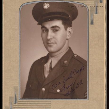 Man in uniform. To a Swell Couple from Helen and Ed. Taken in Neosho, Missouri by Harkins Studio.