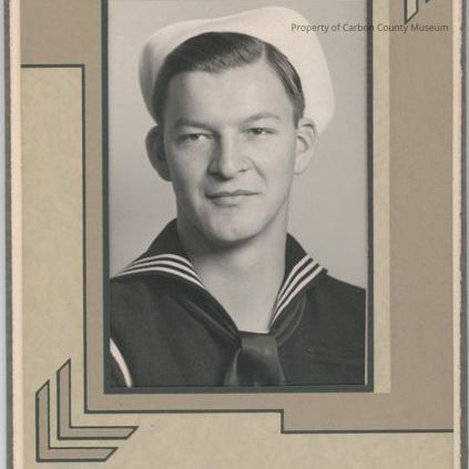 Update 2008: Black and white print. Bust photo of a young man in full navy suit with white navy cap.