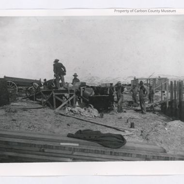 Written on back in blue ink: "Construction of Wyoming State Pen at Rawlins"