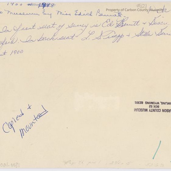 Stamped in back: " Carbon County Museum Box 52 Rawlins, Wyoming 82301"
