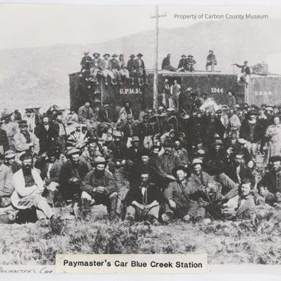 Printed on bottom border on original in black: "Paymasters Car Blue Creek Station"