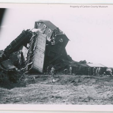 Photo, Black and White, 5 3/4 X 3 1/2, of the Wamsutter train wreck, July 8, 1952.