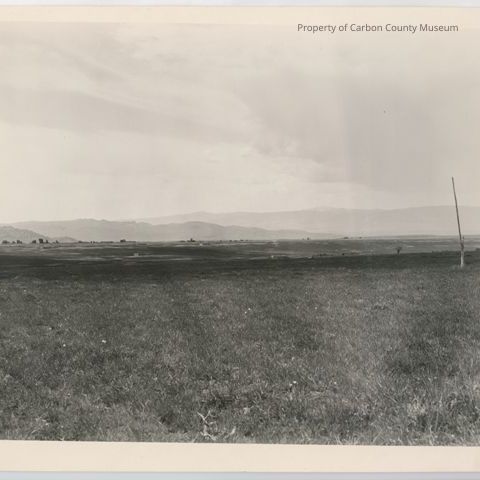 Update 5/2010: 3 black and white prints of landscape scene of grassy meadow, valley with a few buildings in the distance, and hills and mountains in the distance.