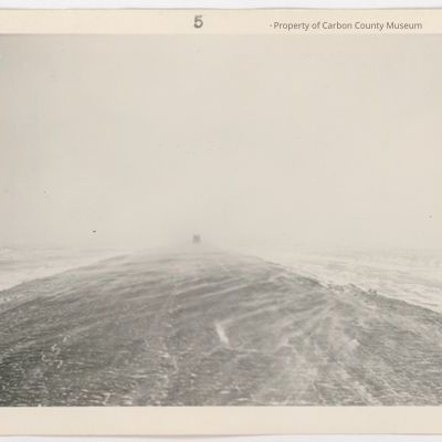 Snow scene, Medicine Bow-Walcott, 1929-1930. Taken Feb. 13, 1929, six miles east of Walcott and neg.