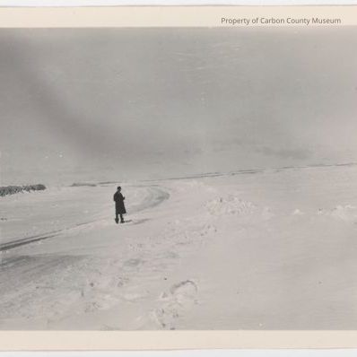Written on back in pencil: "Snow scene 1929-30 Medicine Bow".
