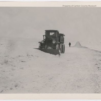 Snow scene with plows, Medicine Bow-Walcott, 1929-1930 and neg.