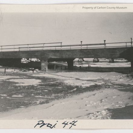 Written on back in pencil: "80' concrete span, Medicine Bow Old Carbon 1920-21."