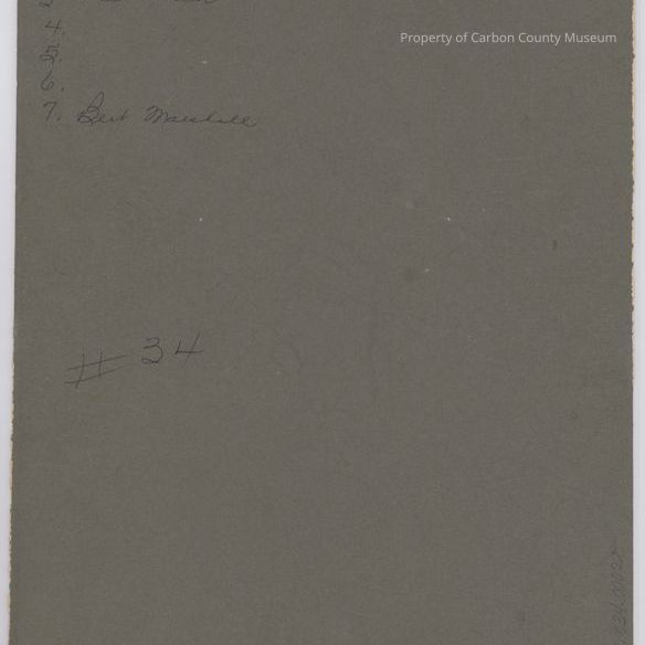Written on the back in black ink: "1. [name cut off] 2. 3. Dee Wren 4. 5. 6. 7. Bert Marshall".