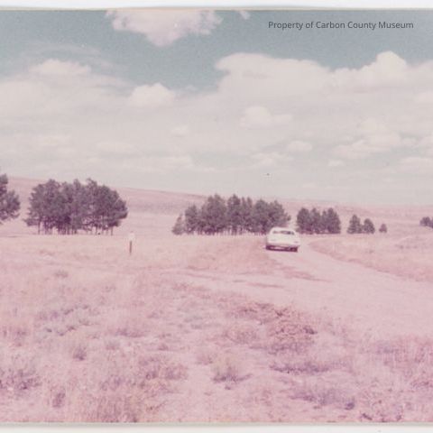 Written on back in blue ink:"Living snow fence on old Rawlins-Muddy Gap road Oct. 1983."