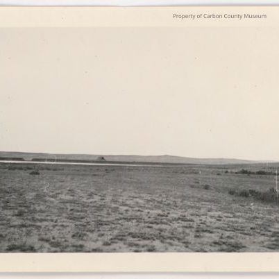 Storage Reservoir and tip of barn at the Hansen Ranch, 15 miles south of the Lincoln Highway.