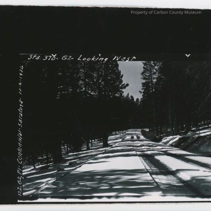 Written on left border in white: "12I, G2, F1 Centennial-Saratoga 10-2-1936". In white on top border: "Sta. 370-G2 looking west". Written on back in pencil: "Centennial-Saratoga 1936 looking West."