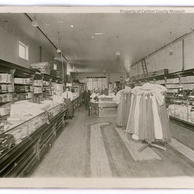 Written on back in blue ink: "[cut off] Raife - manager -" "[cut off] to Carbon county Museum by Mr. & Mrs. Walton [cut off]" "Hugus & Co" "4"