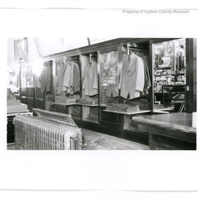 Interior of the Rawlins Mercantile Store. This view is Men's clothing.