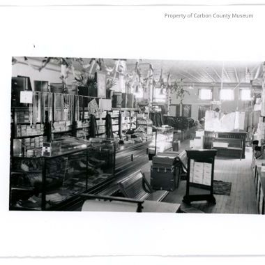 Interior of the Rawlins Mercantile Store. This view is the Men's Dept. and Shoe Dept.