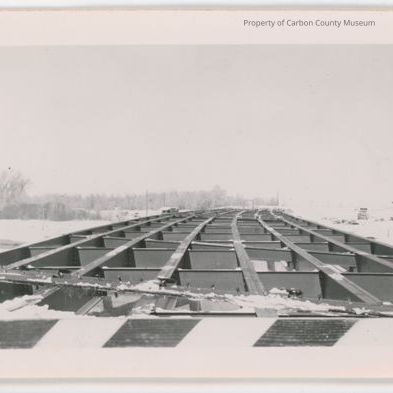 Written on back in pencil: "Bridge const. over North Platte River, Saratoga, 1948-49."