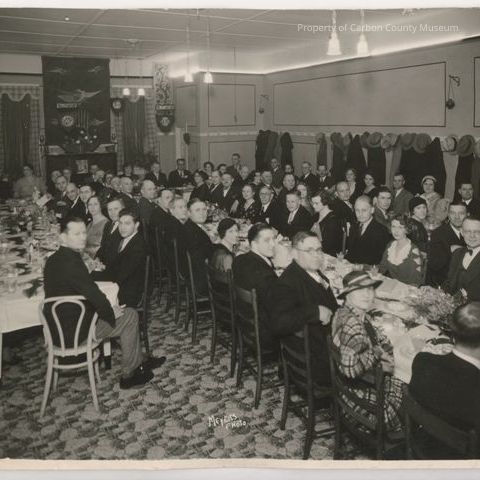 Update 2013: Photograph, black and white, silver colored wooden frame, men and women dining, 7.5"x9.5"