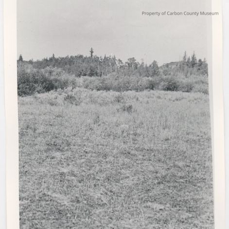 Update 3/2010: Black and white print of grassy field in foreground and trees in distance. Written on back in black ink: "Centennial-Saratoga Medicine Bow Lodge to West Forest Boundary Summer 19933 B.P.R. Looking ahead on [unreadable symbol] (West) at Sta 88+00" Condition good, emulsion impacted by writing on the back.Collection