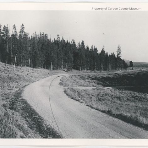 Written on back in black ink: "Centennial-Saratoga West Forest Bdy-East, Survey Report 1939. Looking easterly, or ahead from sta 63+00, Sec G. road rt to Hdqrts Camp of RR Crow Lumber Co. Aug 1939 B.P.R."