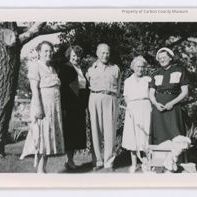 Photo of France's backyard in 1950: Anna, Millie Palmer, Jim Palmer, Edith Bennett, Cecil Johnson, Cecil Alice Johnson.