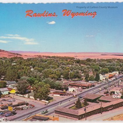 Printed in black on back: "Rawlins, Wyoming Cattle and oil metropolis of the plains in South Central Wyoming. This is a view of U S Highway 30 through west side of Rawlins. "Address" "Distributed by George McCompany, Salt Lake City, Utah" "Plastichorme by Coulorpicture Boston, Mass 02130" "Color Larry Rutherford"