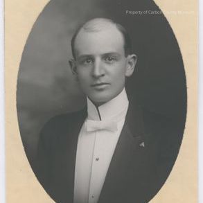 Photo of Ed F. Bennett taken in 1908. Black suit with white bow tie and high collar and white shirt. One copy.
