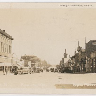 Printed at bottom in white on original negative: "Cedar St. Rawlins, Wyo. Meyers Photo"