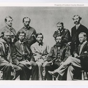 Front row - David Van Lennep, Geologist U.P.R.R., John R. Duff - Massachusetts, Gen. G. M. Dodge, Chief, U.P.R R. engineer, Brig. Gen. John A. Rawlins, Chief of Staff, U.S.A., Major W. Mc. K Dunn, A.D.C. to Gen. Rawlins"