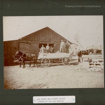 Typed on white adhesive tag at bottom: "Ice House & Livery Stable Corner of 4th & Buffalo"