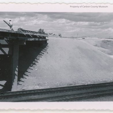 Written on back in pencil:"FGI-221 (3) Chas. M.Smith 40' fill North approach Como Overhead Medicine Bow-Hanna". Photo has scalloped edges.