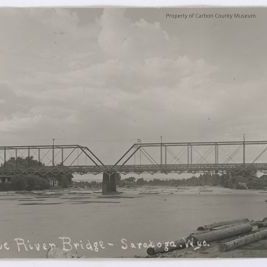 Written on original negative along lower edge: "Platte River Bridge - Saratoga, Wyo." "Gleason Photo".