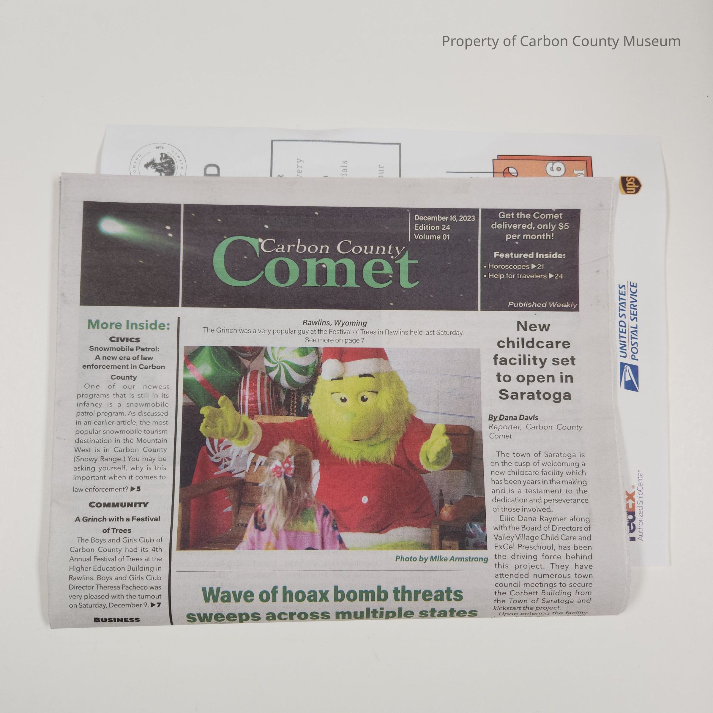 The twenty-fourth issue of the Carbon County Comet, included is a double sided flyer - one side features Rawlins Pack and Ship while the reverse features Rawlins Workzone