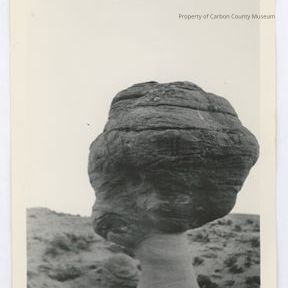 Photo of sandstone formations done by the wind at Windy Hill, north and west of Rawlins about 20 miles. Taken June, 1934.