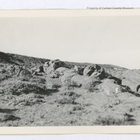 Photo of sandstone formations done by the wind at Windy Hill, north and west of Rawlins about 20 miles. Taken, June, 1934.