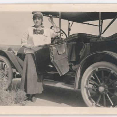 Written on back in blue ink: "Carmen, used first car "Old Grey Mare" about 1915".