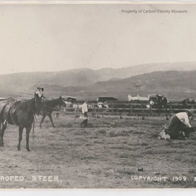Written in white on original negative on bottom: "Tying a roped Steer Copyright 1909 by P H Healy"