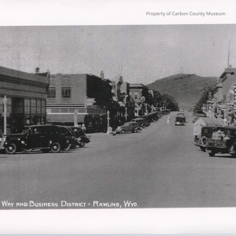 Written on original negative in white: "Lincoln Way and Business District - Rawlins, Wyo. Sanborn Y-1342"