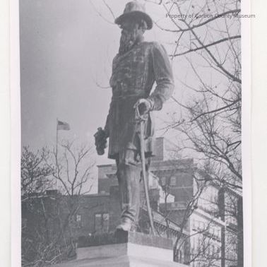 One 7 1/16 x 5 black & white copy print. Written on back in black ink: "Picture of the statue of General John A. Rawlins for whom the town of Rawlins was named. This statue is in Rawlins Park in Washington, D.C.".