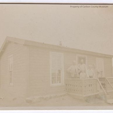Written on back in black: "Carbon, Wyo #12" Identification that was below picture Theo Henkell, J.G. Ekdahl, Father, Mother, Carl & George.