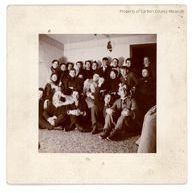 This picture was taken in the Owl Club rooms about 1898. 3rd row: Stella Bennett Cronberg, Helen Bennett Statom, Stella Jennings Hodson, Anna Nickols Rendle, Ed F. Bennett, ?, Mary Murray McKay, Clara Daley Hobbs, Nell Sullivan Jones, Mayo Burnfield, Norrie France, Grace Magor, Turk Batsford, Hugh Murray, Will Edwards, Jim Rendle, Bing Price.