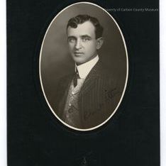 Update - 2009: Black & white oval studio portrait print attached to black mat which has "The Ferris Studio" engraved in tiny gold script at top left corner. A tiny beehive is engraved at center front lower edge with Rawlins, Wyo engraved in tiny print under it.