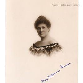 Update - 2009: Black & white studio portrait print of a woman with dark hair in an updo. she is wearing an off the shoulder print top with a dark border & lace around edges. Photo is printed on thick ivory colored paper with tiny icon engraved lower right corner: Golling St. Paul.