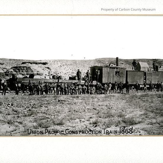 Written on original negative at bottom edge: "Union Pacific Construction Train 1868".