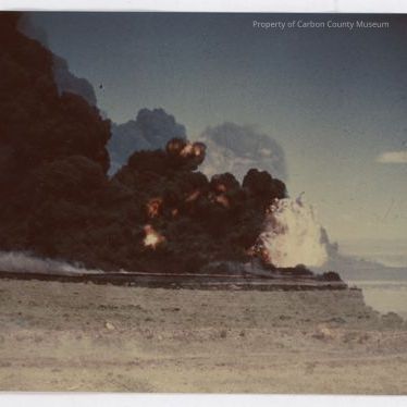 Colored photo of the Sinclair Refinery Fire of June, 1949. It burned for two months.