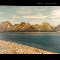 Update June 2011: Colored picture of body of water and mountains in background. It has a silver and brown frame.