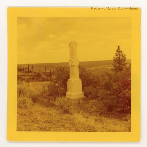 Update 2008: A Kodacolor print, 3 1/2 x 3 1/2 of a tall whitish stone obelisk grave marker for Robert Widdowfield. Gravestone reads: Robert Widdowfield murdered near Elk Mountain August 19, 1878. Aged 33 years. This grave is located at the Carbon Wyoming Cemetery.