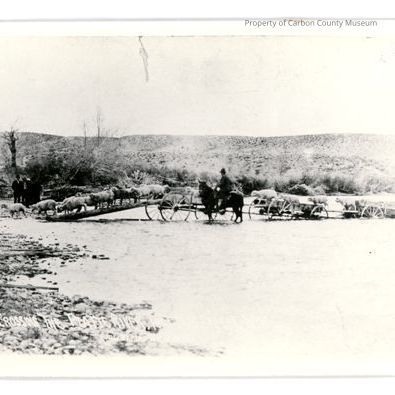Written on back in black ink: "Sheep copy the Platte at Ft. Steele, Wyo."