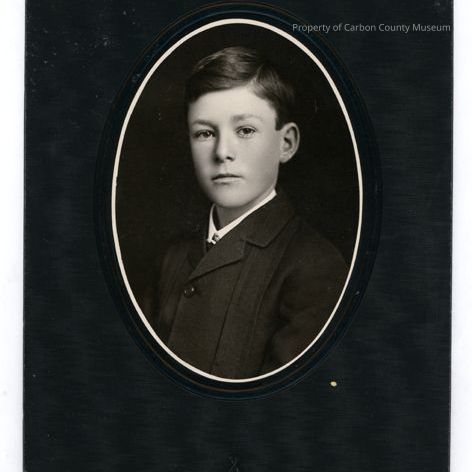 Update - Aug. 2010: Oval black & white studio portrait on a black mat. Image of a young boy dressed in a dark textured suit jacket, tie & white shirt. His hair is dark & parted on his left. Engraved in gold on top left corner "The Ferris Studios" Embossed on bottom center "Rawlins, Wyo."