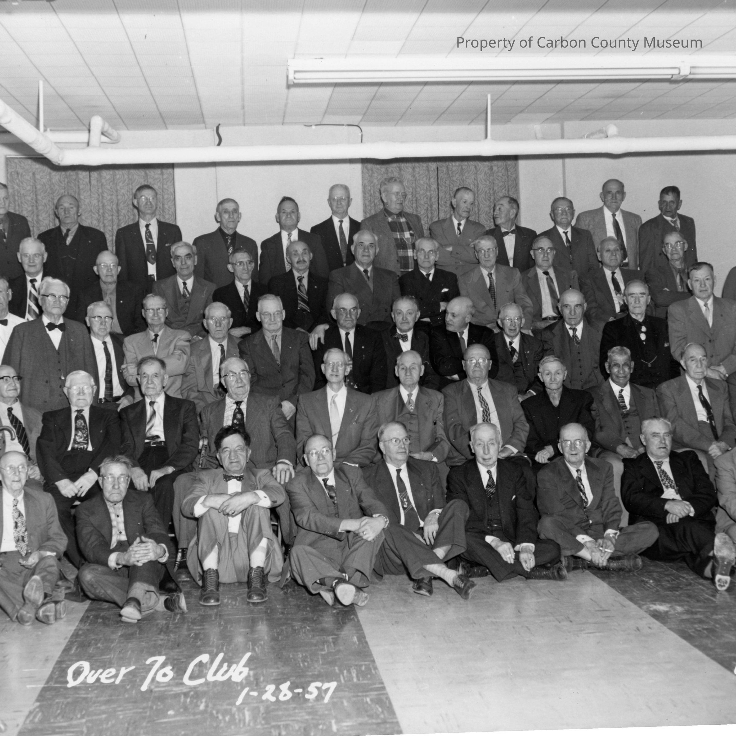 Update 2013: Photograph, black and white, 8.25"x10.25", group of men, "Over 70 1-28-57, Meyers Photo." There are two copies of this photograph.Collection