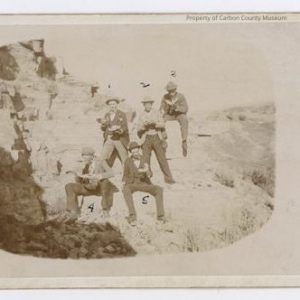 Written on back: [black ink] "1. Jim Rendle 2 [blue ink] Ed Bennett [black ink] 3 [blue ink] Bing Price [black ink] 4 W W Daley 5 E. A. Durant" [pencil] "Cut West of Rawlins".