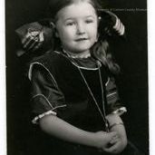Unknown young girl with large ribbon behind her head.